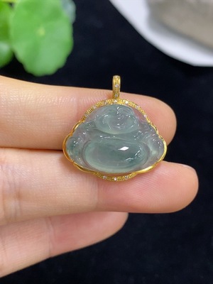 F39554703 Jadeite Buddha Pendant with 18K Gold Clasp, Total Weight Approximately 6.4g