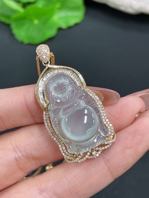 F39617717 Jadeite Buddha Pendant with 18K Gold and Diamond Accents (minimum only) Total Weight Approx. 2.9g