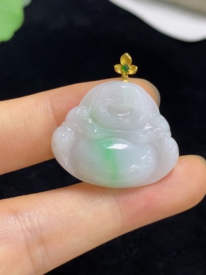 F38517081 Jadeite Buddha Pendant with 18k Gold Clasp, Total Weight Approximately 5.7g
