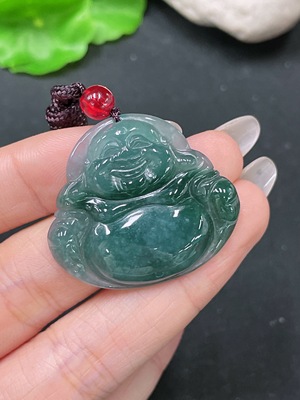 F34031382 Jadeite Pendant Buddha, Total Weight Including Rope: 8.62g