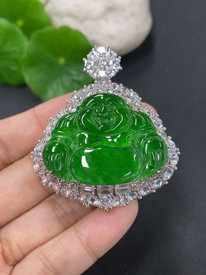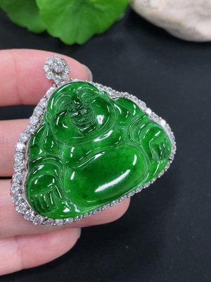 F39559916 Jadeite Buddha Pendant with Inlay Setting, Non-Gold Inlay, Total Weight Approximately 25.58g