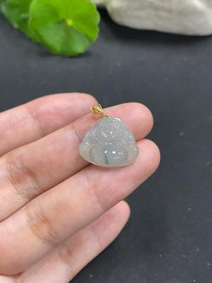 F37397731 Jadeite Buddha Pendant 18K Gold Total Weight Approx. 1.4g