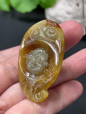 F34057842 Jadeite Buddha Pendant, Total Weight Approx. 12.7g, Yellow Part Color Origin Undetermined