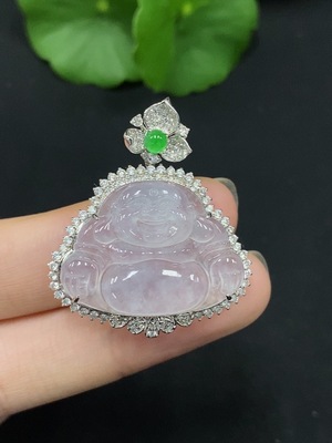 F36315008 Jadeite Buddha Pendant with 18K Gold Clasp, Total Weight Approximately 7g, Set with Diamonds