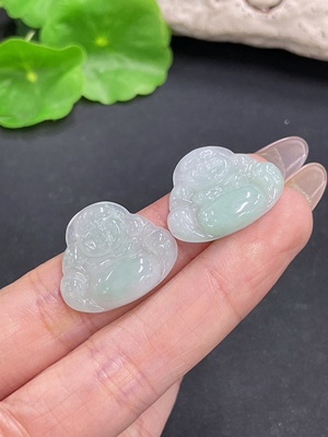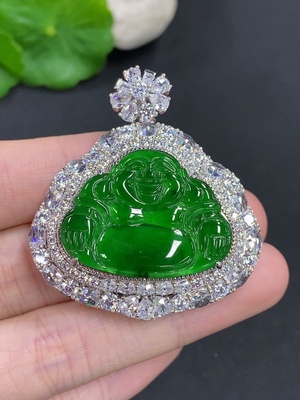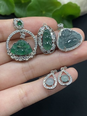 F35165882 Jadeite Buddha Pendant with Inlaid Bezel / Cabochon Inlaid Earrings Non-Gold Inlaid