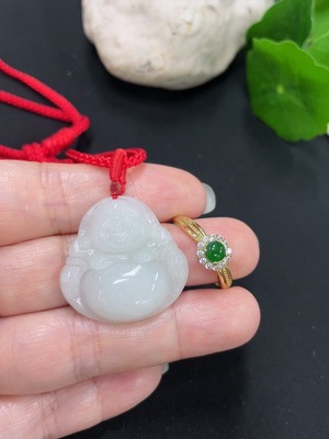 F38513191 Jadeite Buddha Pendant + Ring Non-Gold Inlaid Adjustable Size