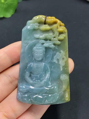 F33942466 Jadeite Pendant Buddha, Total Weight Approx. 5.95g, Yellow Part Color Origin Undetermined
