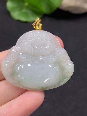 F35156126 Jadeite Buddha Pendant with 18k Gold Clasp, Total Weight Approximately 5.4g
