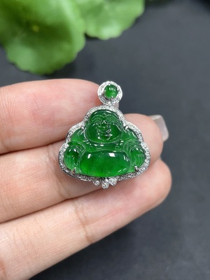 F37422669 Jadeite Pendant Buddha with 18K Bezel and Diamond Accents, Total Weight Approx. 6.22g