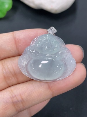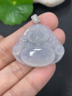F19078933 Jadeite Buddha Pendant Inlaid with Mounting Total Weight 2.144g