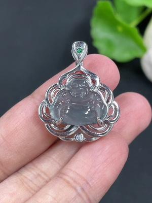 F40715046 Jadeite Buddha Pendant with Inlay Non-Gold Total Weight Approx. 8.24g