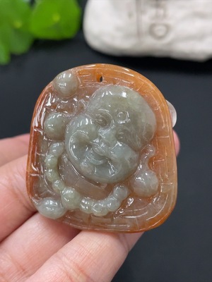 F35126231 Jadeite Buddha pendant with a total weight of approximately 7.4g including the cord (accompanying beads are non-A)