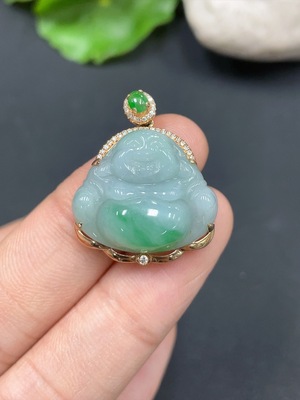 F17885056 Jadeite Buddha Pendant with 18K Gold Bail, Total Weight 9.175g