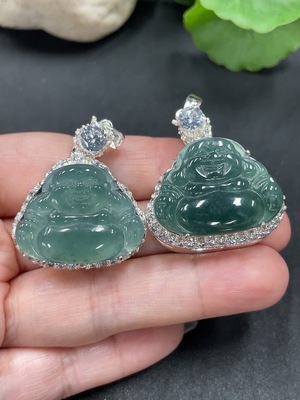 F34031934 Jadeite Buddha Pendant Inlaid (Non-Gold Setting, Total Weight Approx. 10.34g)