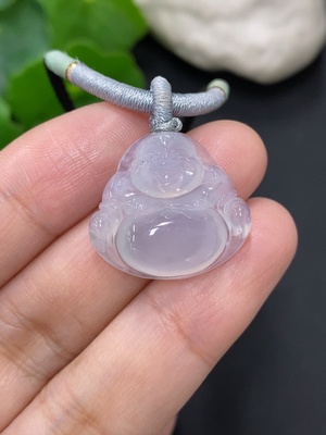 F37443453 Jadeite Buddha Pendant, Total Weight Including Rope Approximately 6.6g