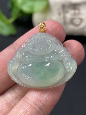F28241945 Jadeite Buddha Pendant with 18K Gold Clasp, Total Weight Approximately 2.6g
