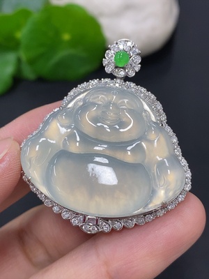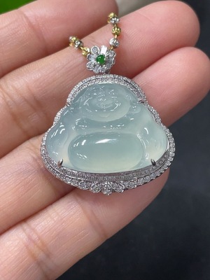 F32708358 Jadeite Buddha Pendant Set with 18K Gold and Diamonds