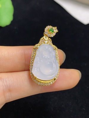F34948870 Jadeite Buddha Pendant with 18k Gold Mounting, Total Weight Approx. 4.32g