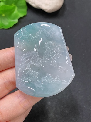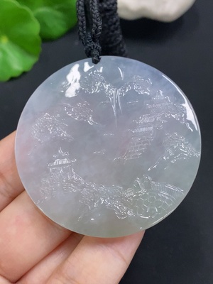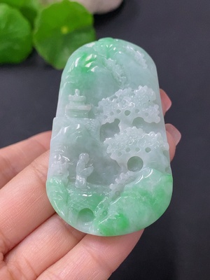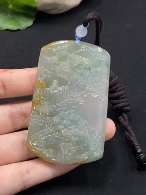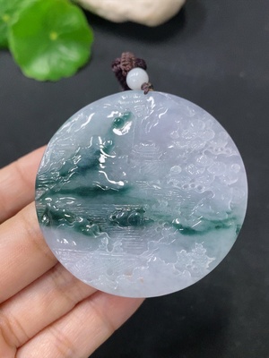 F33875961 Jadeite Pendant Landscape Guanyin