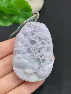 F33928151 Jadeite landscape pendant with a total weight goods weight of approximately 11.4 grams (the cause of the red尊色靡 to be determined)