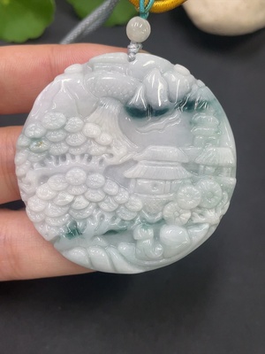 F26044331 Jadeite landscape pendant, total weight approximately 98.7g, color origin undetermined