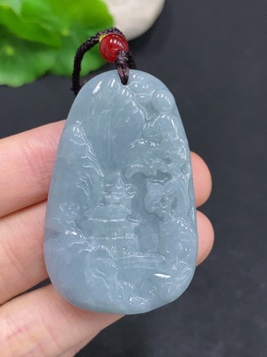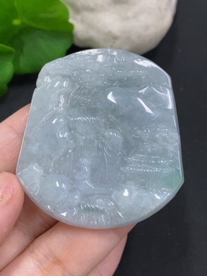 F35089394 Jadeite Pendant Landscape Guanyin
