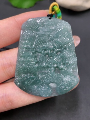 F28295305 Jadeite Landscape Pendant Total Weight Approx. 117.6g (Including Rope) Color Origin Undetermined