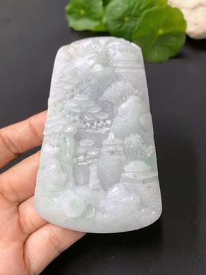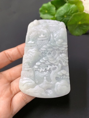 F26962968 Jadeite Pendant Landscape Plaque Ruyi