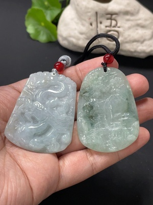 F33836546 Jadeite Pendant Dragon Plaque Landscape Plaque with Non-A Beads