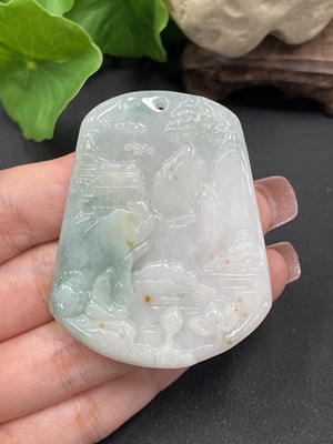 F30498075 Jadeite landscape pendant with a total weight of approximately 40.15g containing other mineral components