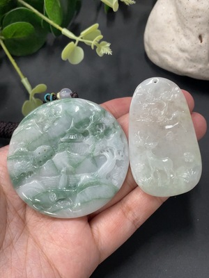F18041412 Jadeite Peacock/Landscape Pendant Sell as a Lot