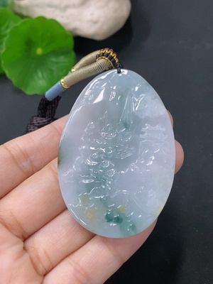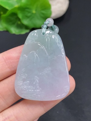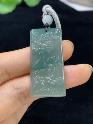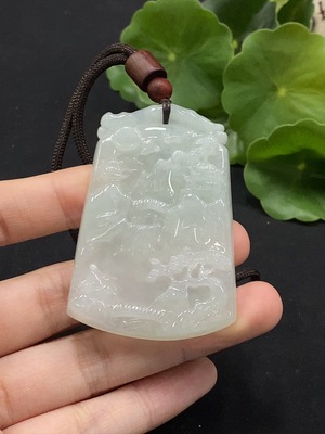 F31594556 Jadeite Pendant Landscape Plaque Total Weight Including Rope: 18.39g