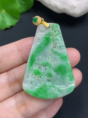 F30483528 Jadeite Landscape Pendant Non-Gold Inlaid Total Weight About 9.4g