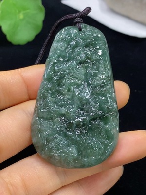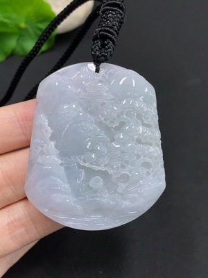 F31594556 Jadeite Pendant Landscape Plaque Total Weight Including Rope: 18.39g