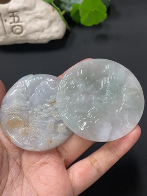 F35159067 Jadeite Landscape/Flowering and Prosperity Pendant Sell as a Lot