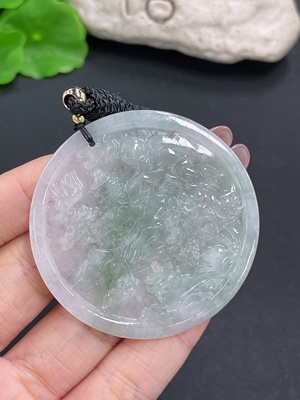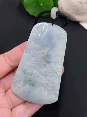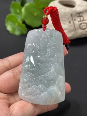 F31592990 Jadeite landscape pendant plaque, total weight approximately 39.4 grams (including rope weight)