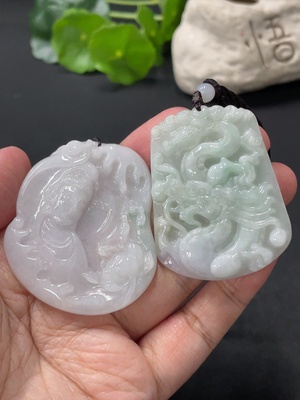 F32754524 JadeitePendant Guanyin Plaque Dragon Plaque with Non-A Grade Beads