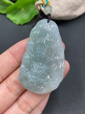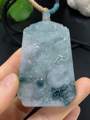 F33918718 Jadeite Pendant Dragon Plaque Landscape Plaque with Non-A Grade Beads