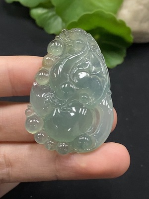 F31610185 Jadeite Pendant Bubble Dragon Fu Gua with Non-A Grade Stones