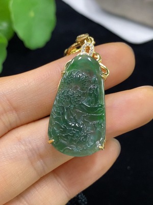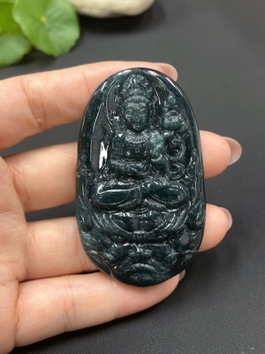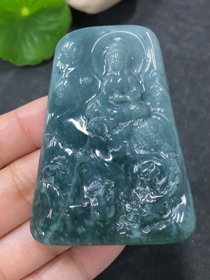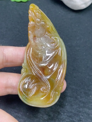 F18061392 Jadeite Dragon-Riding Guanyin Pendant, Total Weight 31.828g