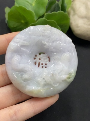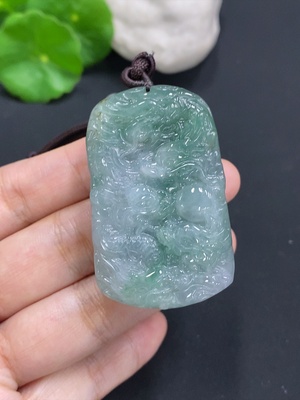 F33836546 Jadeite Pendant Dragon Plaque Landscape Plaque with Non-A Beads