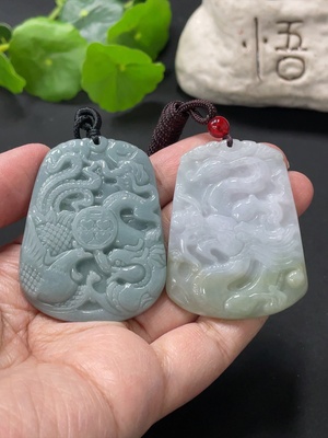 F33874427 Jadeite Pendant Dragon Phoenix Auspicious Dragon Plaque with Non-A Bead