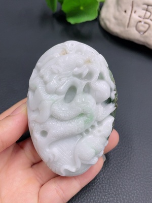 F23592530 Jadeite Handheld Dragon Plaque with Other Mineral Components, Total Weight 276.786g