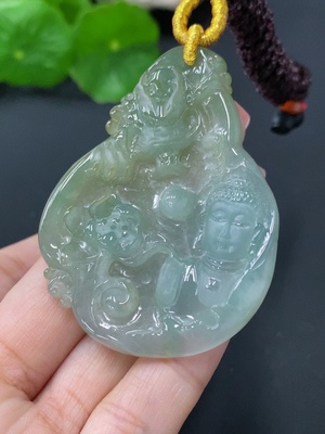 F26005151 Jadeite Pendant Imperial Dragon Amitabha Buddha