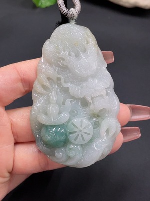 F33873769 Jadeite dragon pendant with a total weight of approximately 40 grams (including rope weight) (color origin undetermined)