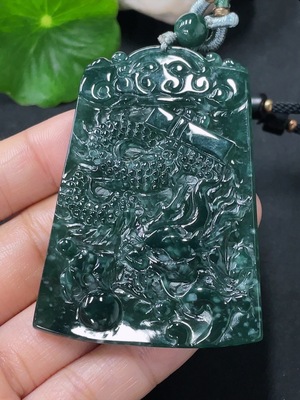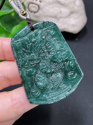 F32754524 JadeitePendant Guanyin Plaque Dragon Plaque with Non-A Grade Beads
