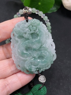 F36222826 Jadeite Dragon Pendant Total Weight Approx. 37.4g (Including Rope Weight) (Matching Beads Non-Grade A)