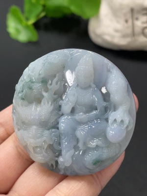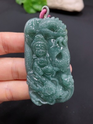F37347799 Jadeite Dragon-Riding Guanyin Pendant, Total Weight Approx. 43.6g