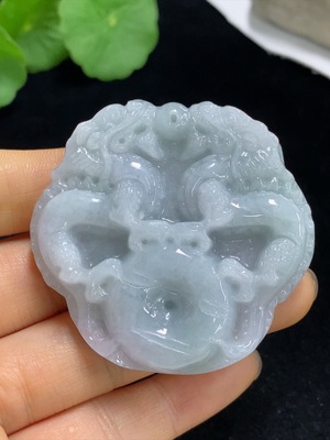 F31610185 Jadeite Pendant Bubble Dragon Fu Gua with Non-A Grade Stones