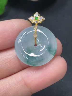 F18958491 Jadeite Pendant, Peace Button with 18k Gold Clasp, Total Weight 8.293g